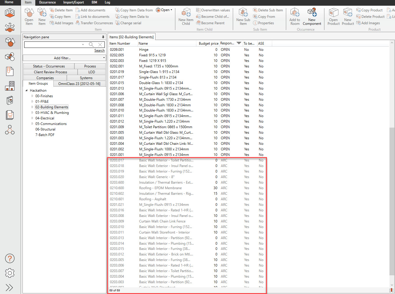 dRofusでは、すべてのアイテム、オカレンス、製品に、ARC、EL、IT、INT などの責任グループを割り当てることができます。