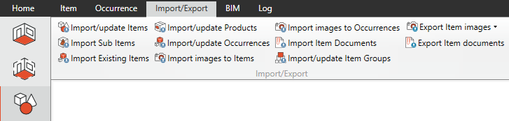 リボンメニューから "インポート/エクスポート "を選択すると、インポート/更新オプションが表示されます。