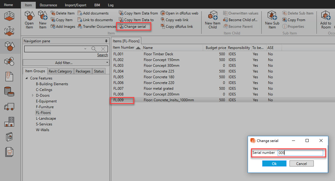 dRofusのリボンメニューから “シリアルを変更 (Change Serial) ”を選択すると、