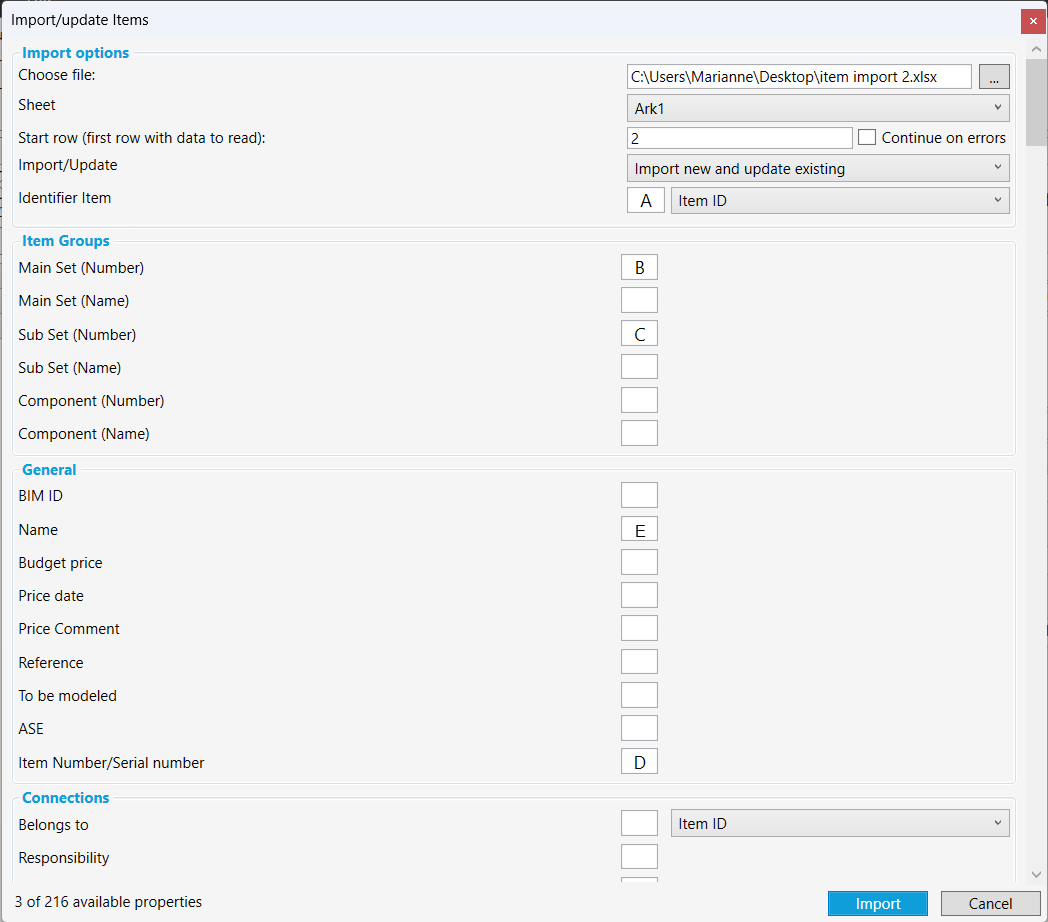 2. アイテムグループ内でまだ使用されていない新しい値を入力します。