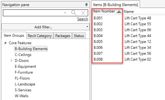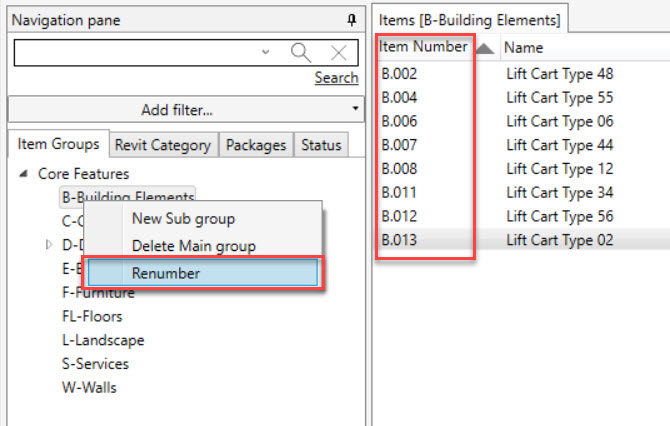 プロジェクトから複数のアイテムが削除されると、アイテムのナンバリングにずれが生じます