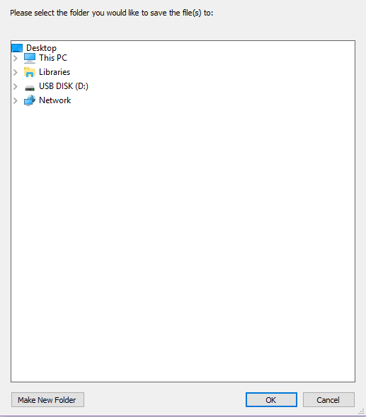 画像を保存するフォルダを選択するか、”新規フォルダを作成 (Make New Folder)”を選択して新規フォルダを作成します。