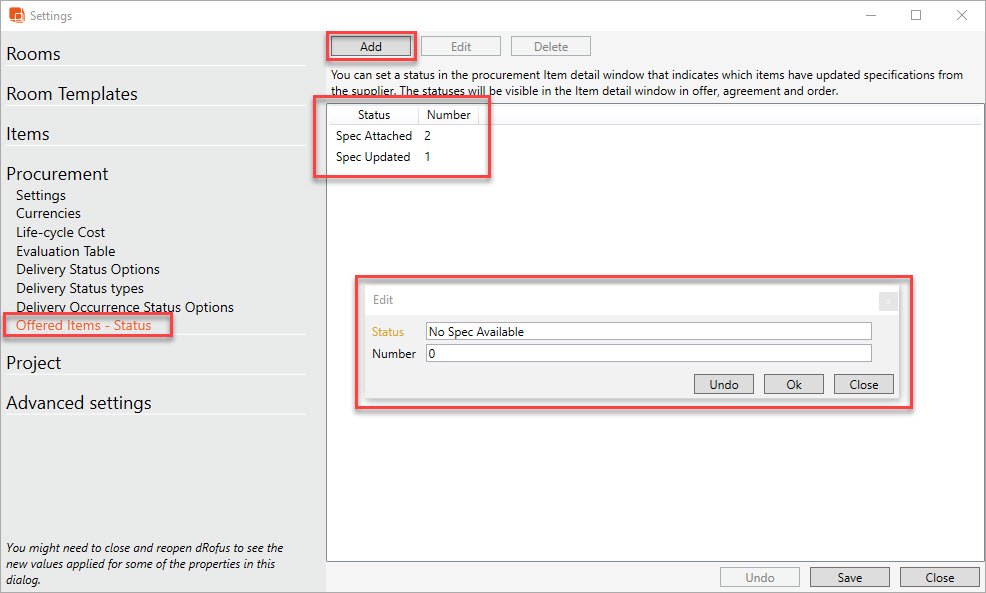 オファーされたアイテムを右クリックすると表示されるオファーアイテムデータパネルでは、各アイテムにあらかじめ定義されたオファーアイテムステータスを設定することができます。