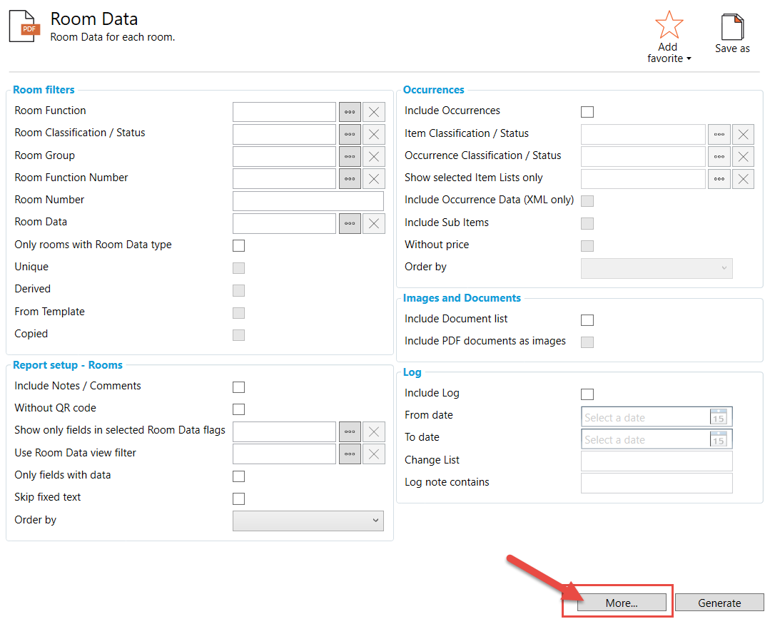 その他のレポート・オプションにアクセスするには、レポート・ページの "生成 (Generate)"の隣にある