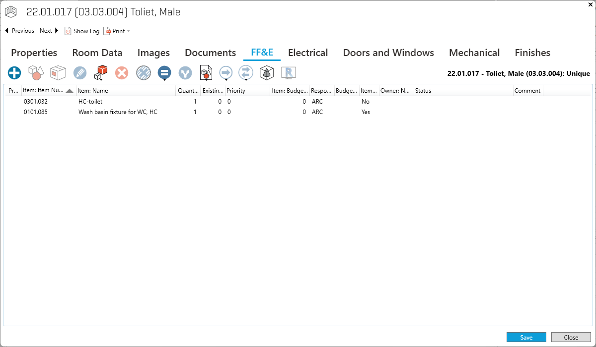 部屋に追加されたアイテムは、部屋のアイテムリストに表示されます。