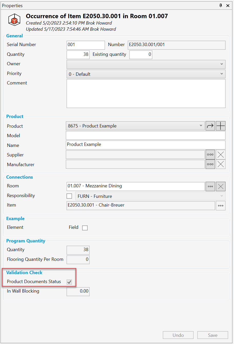 ”Validation Check (検証チェック)” という新しいグループ内の “Product Documents Status (製品ドキュメントのステータス)” の下にチェックボックスが表示されています。これは、どのオカレンスが調達の準備ができているかを素早く確認するためにオカレンスリストに追加される列や、レポートフィルタで、