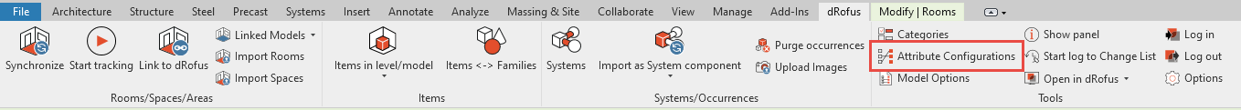 新規作成または既存の部屋属性構成を編集するには、"属性構成"(Attribute configurations) をクリックします: