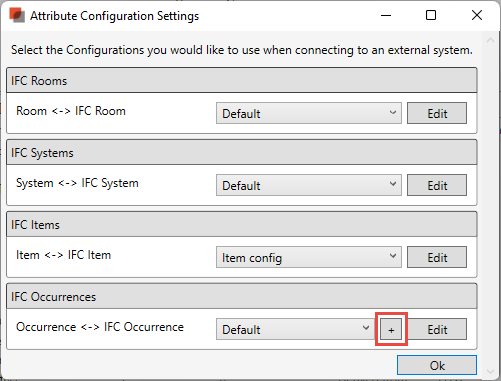オカレンス <-> IFCオカレンス構成の場合、構成の名前の右側に “+ “ ボタンがあることに注意してください。;