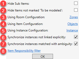 - アイテム責任フィルタ: "部屋のアイテム" リストに含める dRofus アイテムの責任を選択できます。