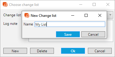 " 新規作成" を選択して新しい変更履歴リストを作成するか、ドロップダウン・メニューから既存の変更履歴リストを選択します :