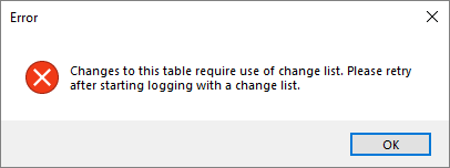 プロジェクト管理者がプロジェクトの管理設定で "強制変更リスト" 機能を有効にしている場合、ユーザーには次のような警告メッセージが表示され、この場合、上記の "変更リストへの記録開始" 機能を使用する必要があります :