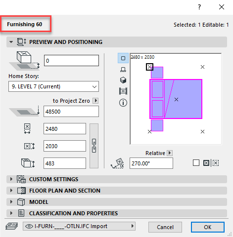 構成を変更する方法をご覧ください: ArchiCADのオブジェクトからアイテムへの設定.