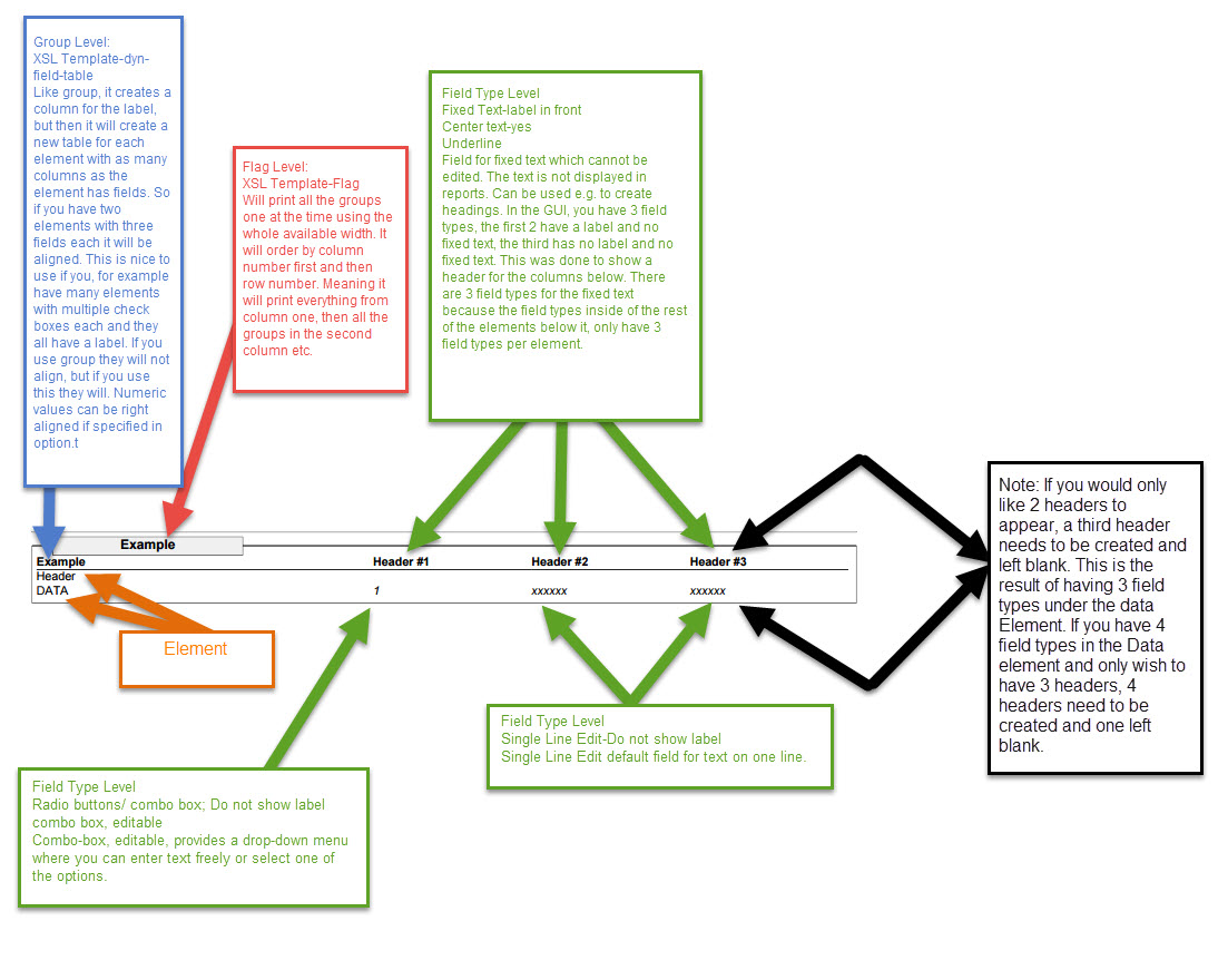 - グループがxsl report template Dyn-field-table;に設定されている場合、groupと同様に、ラベルのための列ができますが、その後、要素がフィールドを持っているのと同じ数の列を、