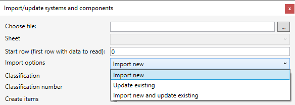 インポート/更新システムとコンポーネント (Import/update systems and components) を選択すると、