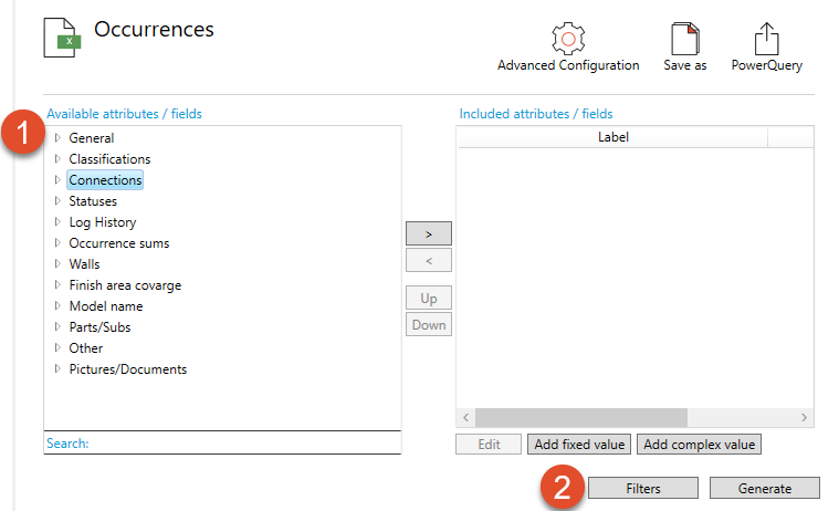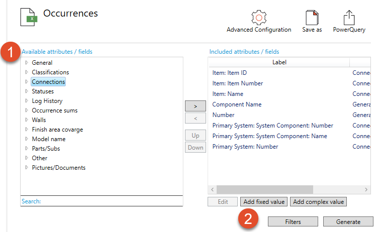 フィルタを使用すると、システム・コンポーネントであるオカレンスのみをエクスポートできます: