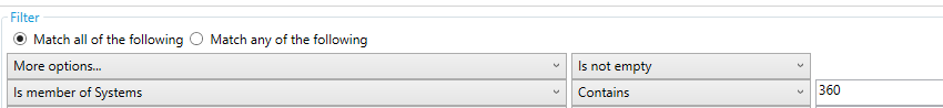 7: "空ではない (Is not empty)"または/に設定し、システム番号でフィルタリングします。