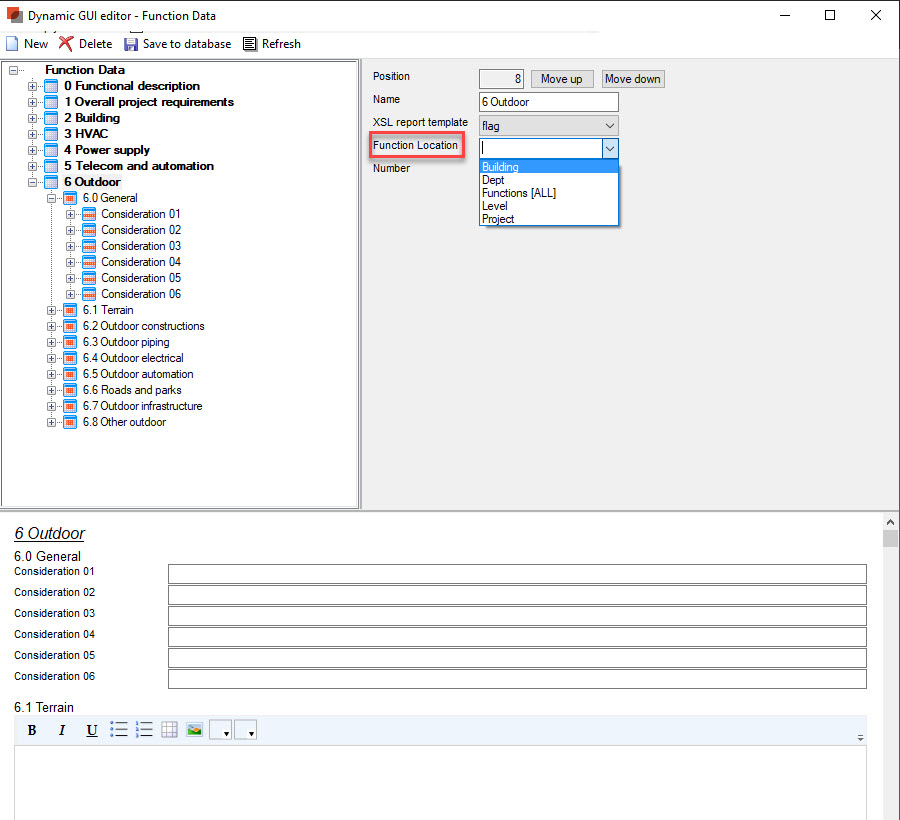 フラグと関連フィールドは、機能構造の特定のレベルの部屋モジュールプロパティパネルに表示されます: