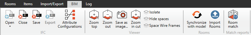 IFCファイルに接続すると、BIMタブ内のリボンメニューに以下のオプションが表示されます;