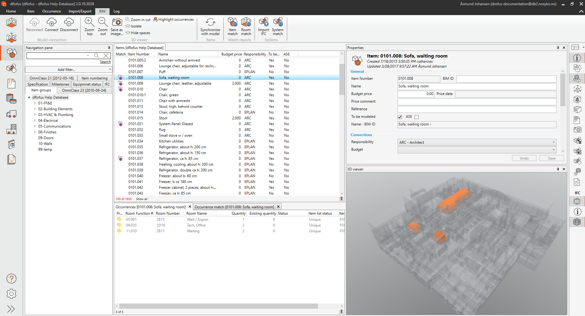 ![]() | アイテムはモデルの中にあり、dRofusのアイテムとリンクしています。 |