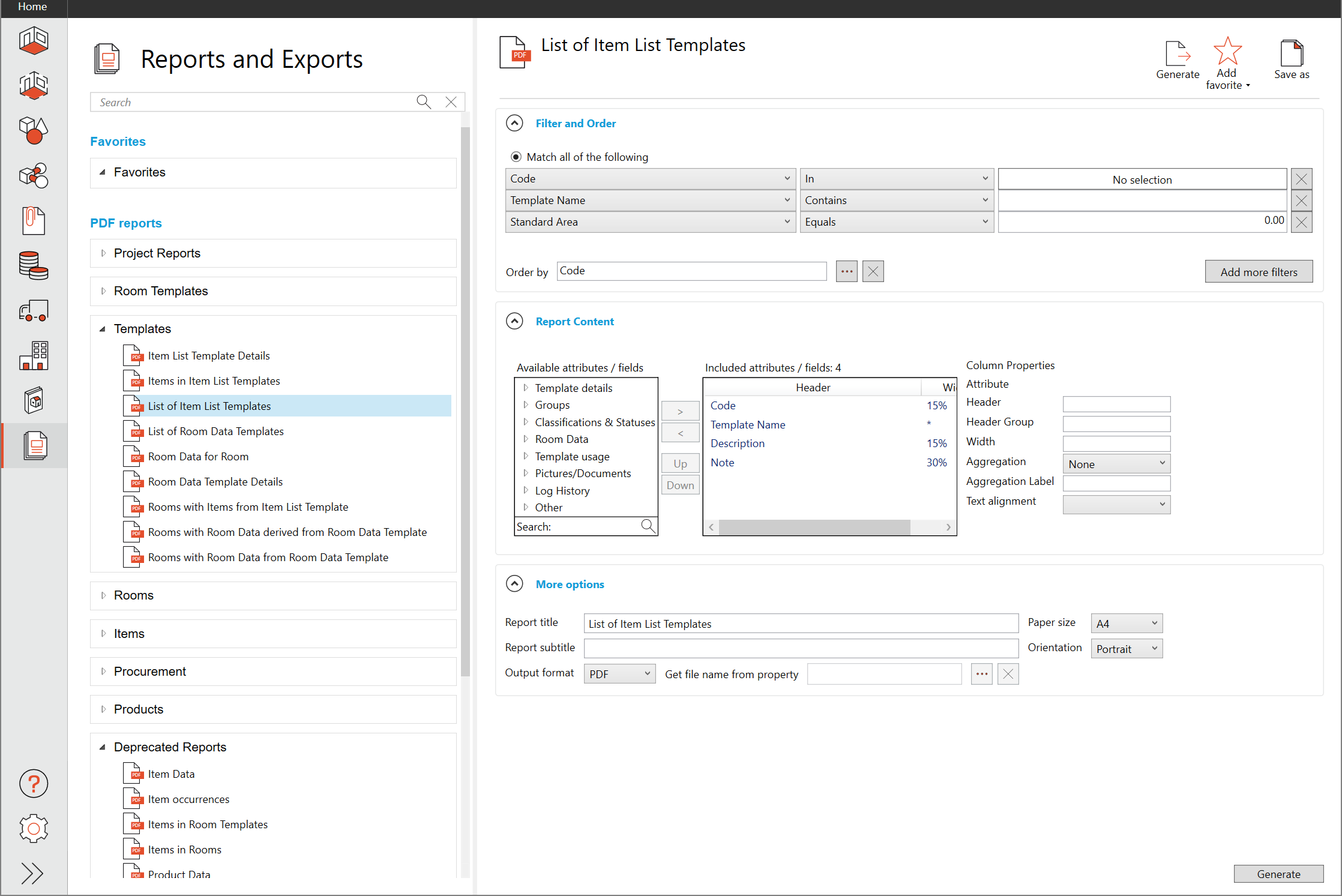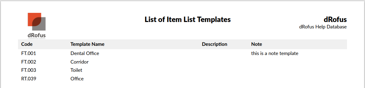 アイテムリストテンプレート一覧・PDFレポート