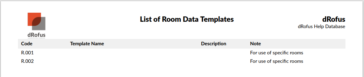 すべての部屋データ テンプレートを一覧表示しますが、