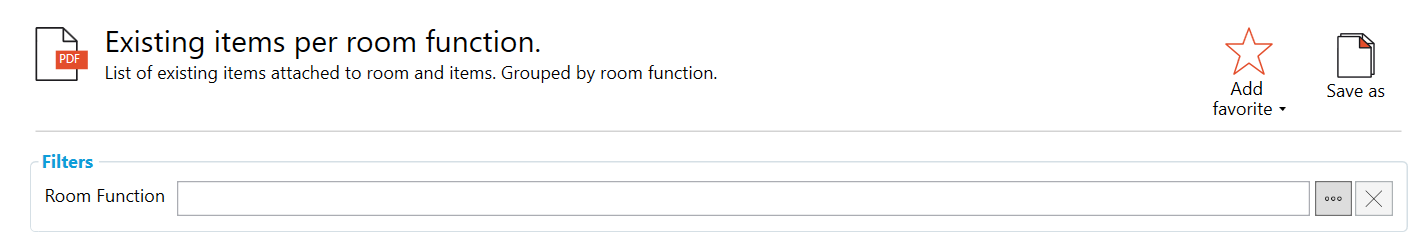 部屋機能: 選択した機能から、既存のアイテムのみを表示するようにレポートをフィルタリングします。