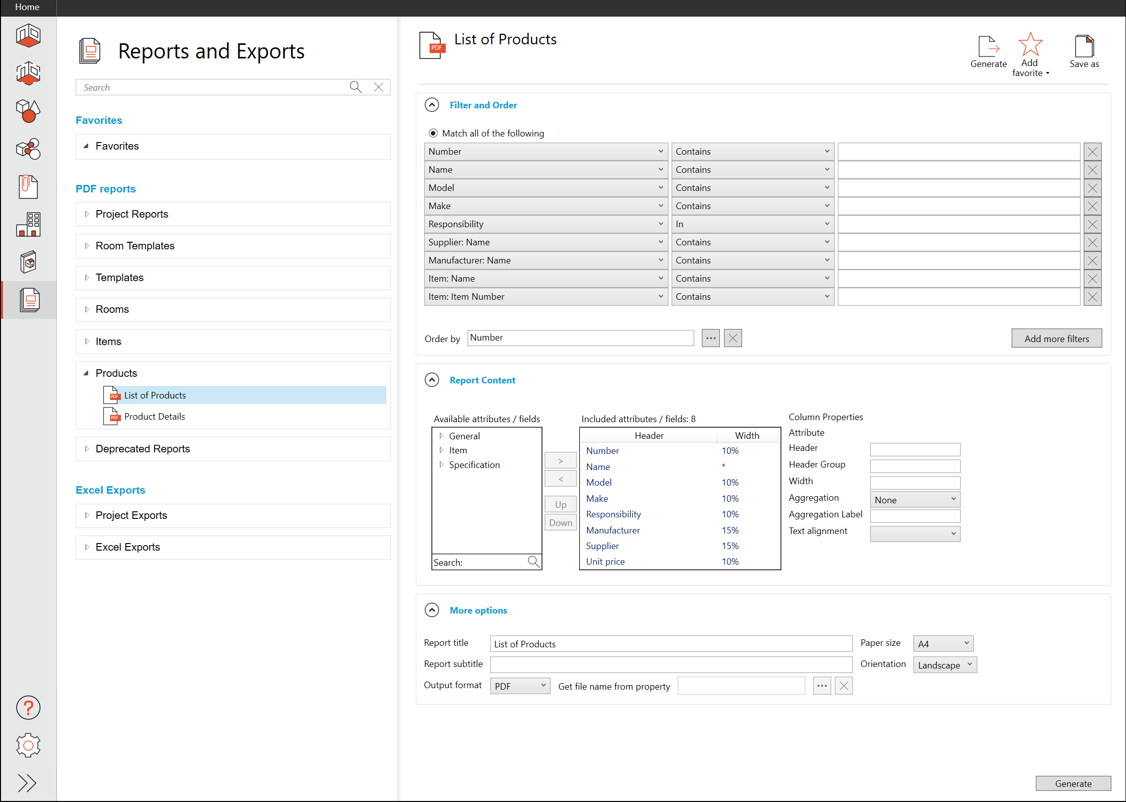 製品リスト・PDFレポート