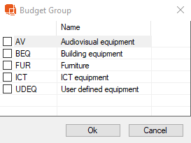 予算グループ: チェックした場合は、指定した予算グループのアイテムのみがレポートに表示されます。