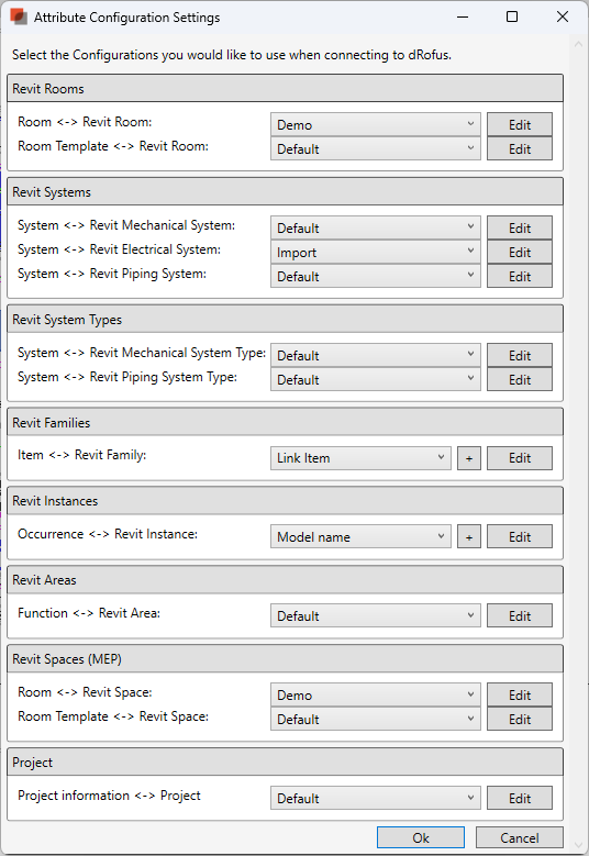 Revit属性は、dRofusの属性とリンクさせることができます。リンクは属性構成で行います。