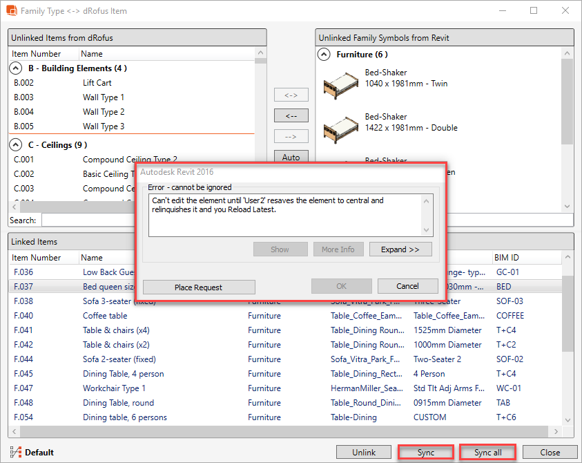 dRofusと同期する前に、セントラルモデルと同期して、ローカルフィルが最新であることを確認する必要があります