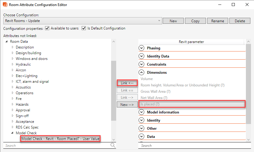dRofus 部屋データに、リンクされた Revit 部屋が配置済みかどうかのステータスを追加する