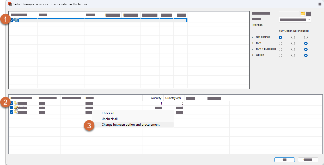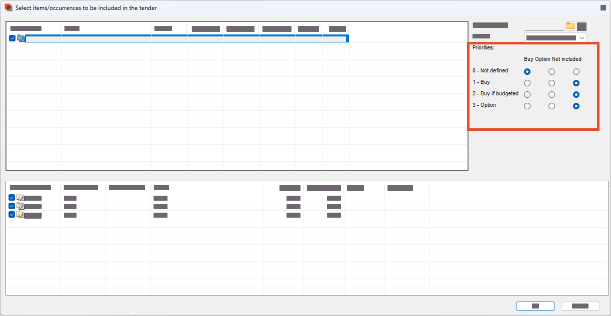 dRofus gives you the option to sort Items into Priorites, that makes it easier to sort out which Item to add to the tender. Priorities are project-specific and must be added by an admin user. Add new Priorite