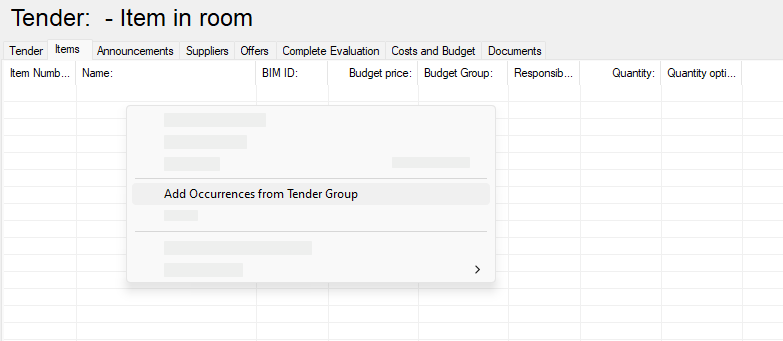 If the option Add Occurrences from Tender Group is unavailable (grey) there are two possible issues;
