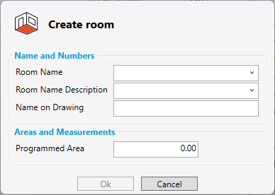 Select “Add Room” in the Ribbon menu. Window below will appear: