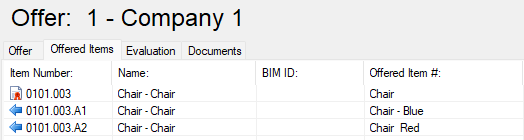 two alternatives Items “Chair - Blue” and “Chair Red”