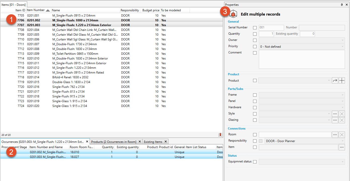 Change the properties within the pane. When selecting multiple Occurrences a tickbox appears and must be checked to be able to edit the properties.