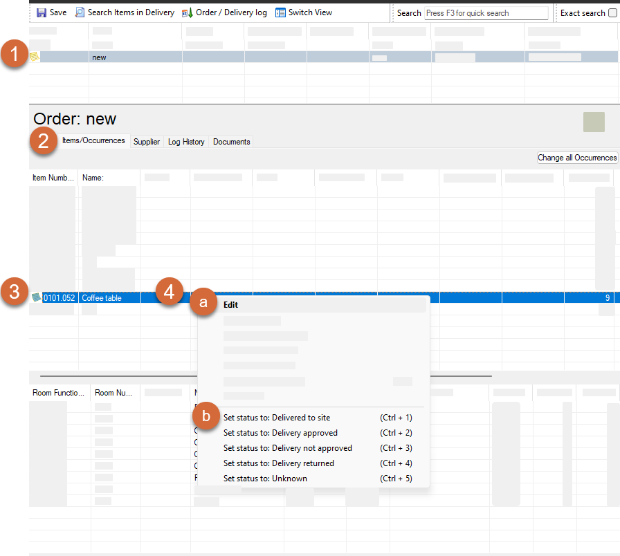 Registrate Delivery Status on Selected Occurrences/ individuals of the Items