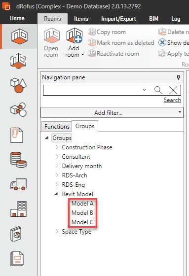 You will need to ensure that each model is assigned a unique name. If you us Room Groups you have to make sure that the Model name matches exactly one of the predefined Room Group values within dRofus. In this example, "Model A" is used: