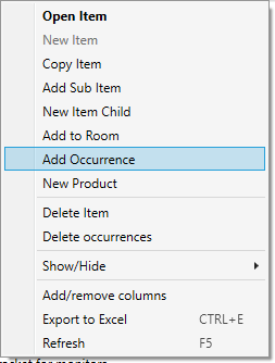 Create Occurrence by selecting Item: