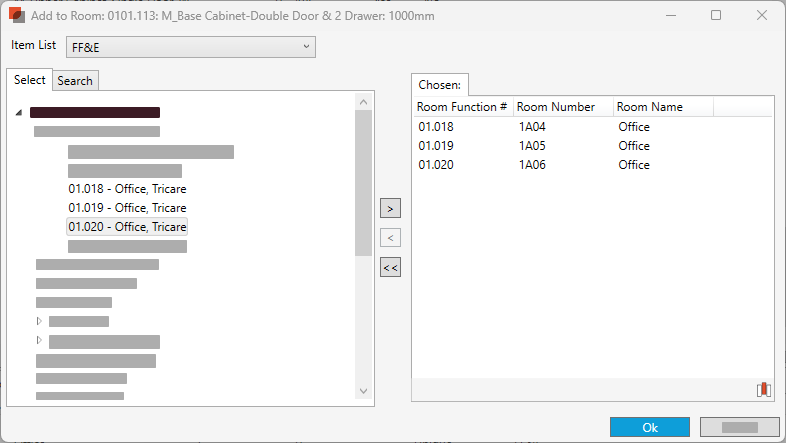 If the Item Occurrences is already within the project and it needs to be associate to a room follow these steps: