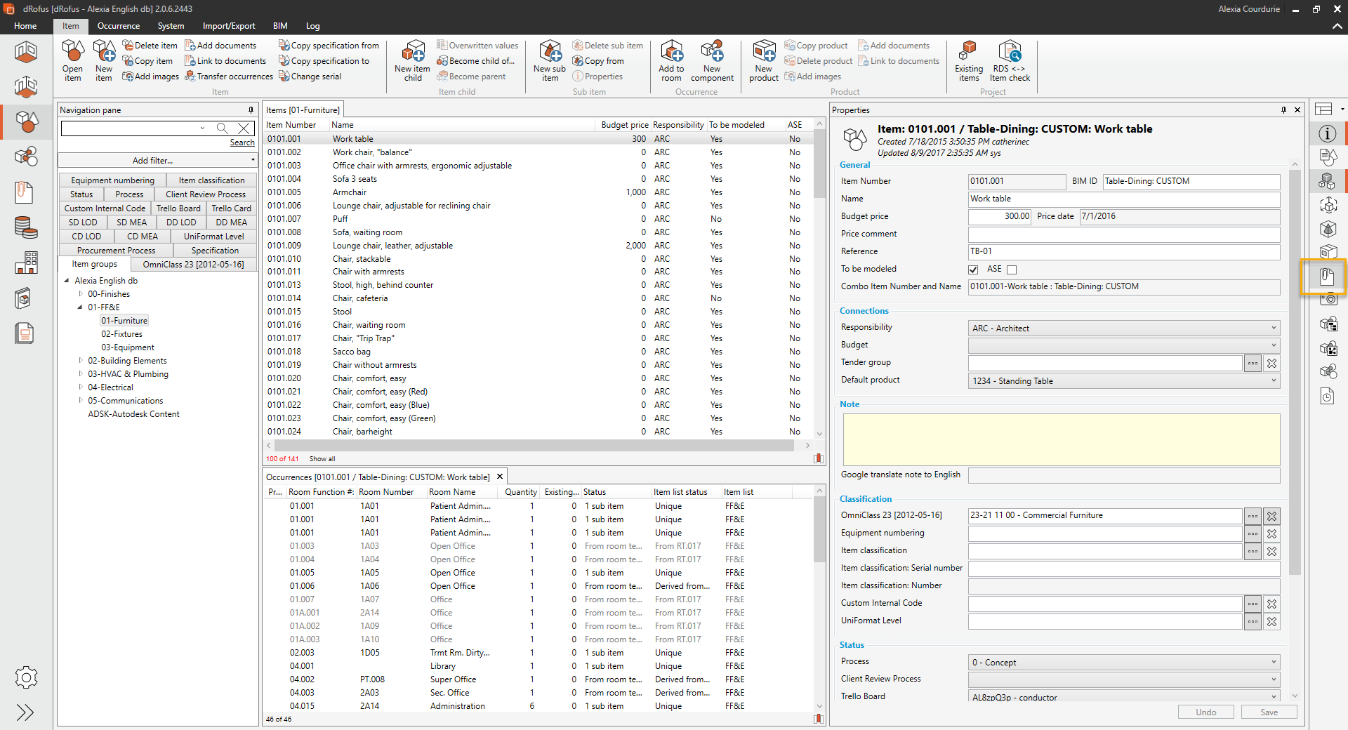Properties: Shows properties of the entity you have selected. If you select a document category you can change number and name of the category. If you select a document you can edit details and add the document to document categories and items/products.