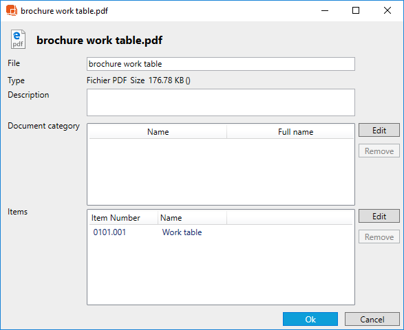 6. Select Items/Products: List of items/products that the document will currently be linked to. You can add more items/products by selecting Edit and pick more items/products. Note that if you want to add the document to more products you will only be able to do that for items that has products attached;