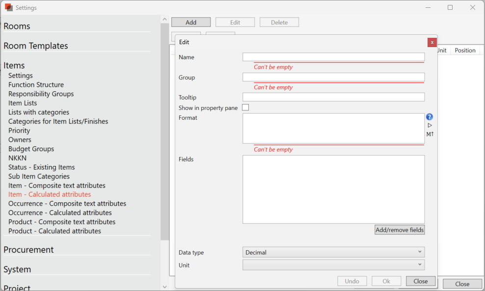 Edit Item Calculated Attributes