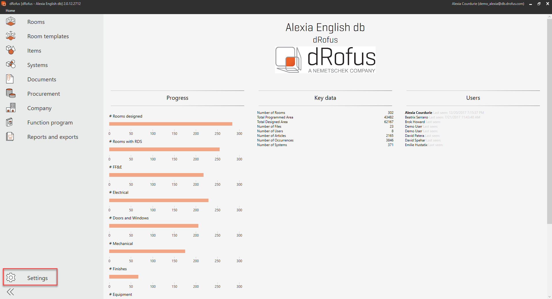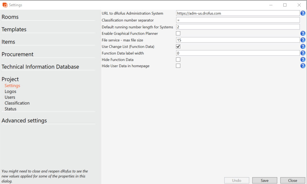 The project settings will enable you to change several project-wide setup parameters.You find them in the left hand menu.