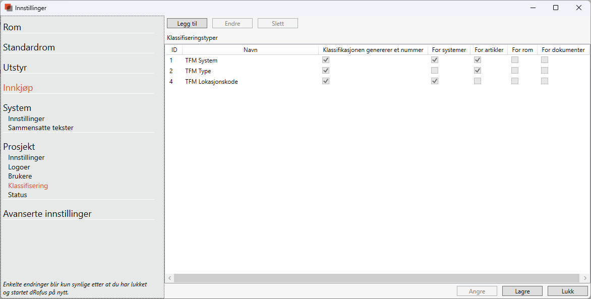 Eksempel viser 2-bokstavskode. Dette oppsettet kan også endres til 1- eller 3- bokstavskode.