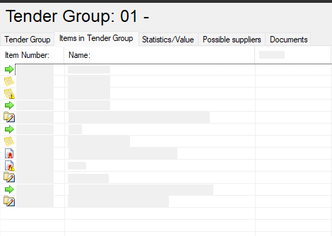 Example above shows that the Items in the Tender Group are in different stages