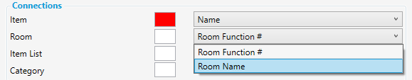 It is also possible to specify connections to Room (by either Room Function # or Room Name), also Item list and also Category.