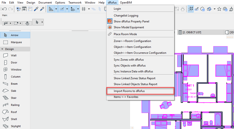 It is possible to import ArchiCAD Zones with any associated information from an ArchiCAD model directly into the dRofus database.