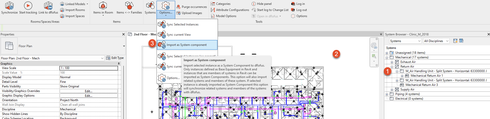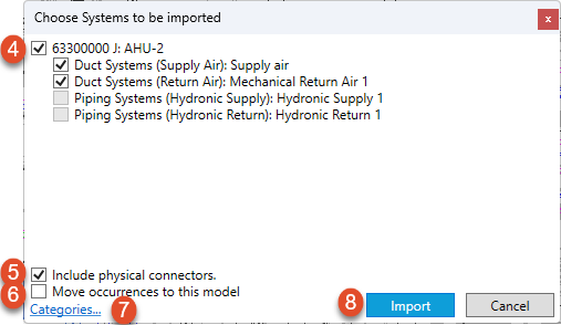 Import System Component and connected system from Revit