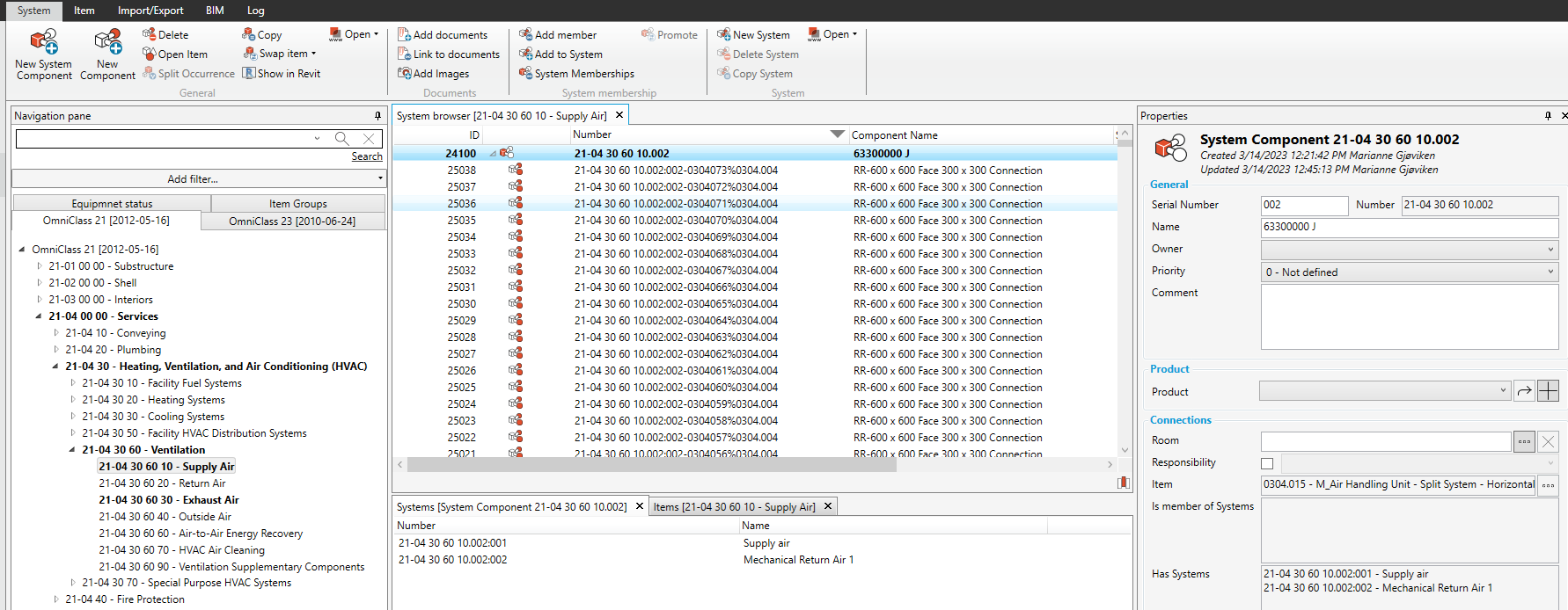 Select “Import as System Component” . A list over Systems that the Item are connected to will appear.